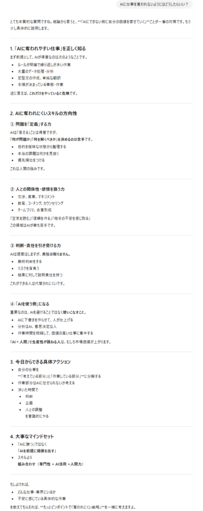 AIに仕事を奪われないようどうしたらいいとAIに聞いたところ、